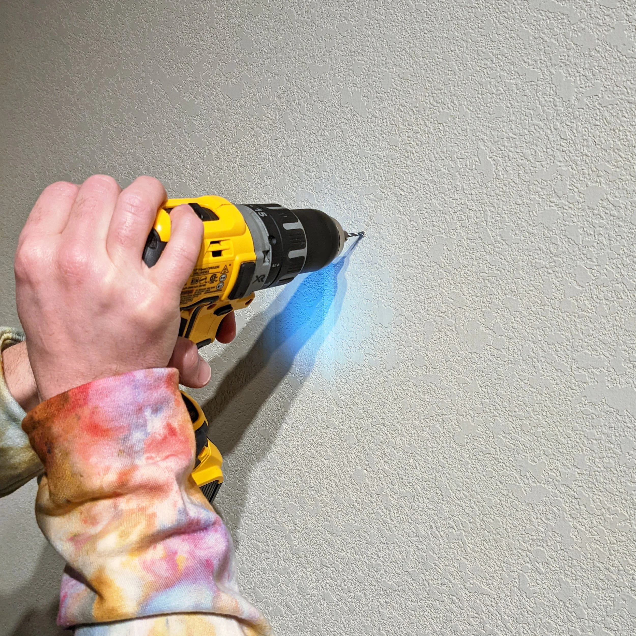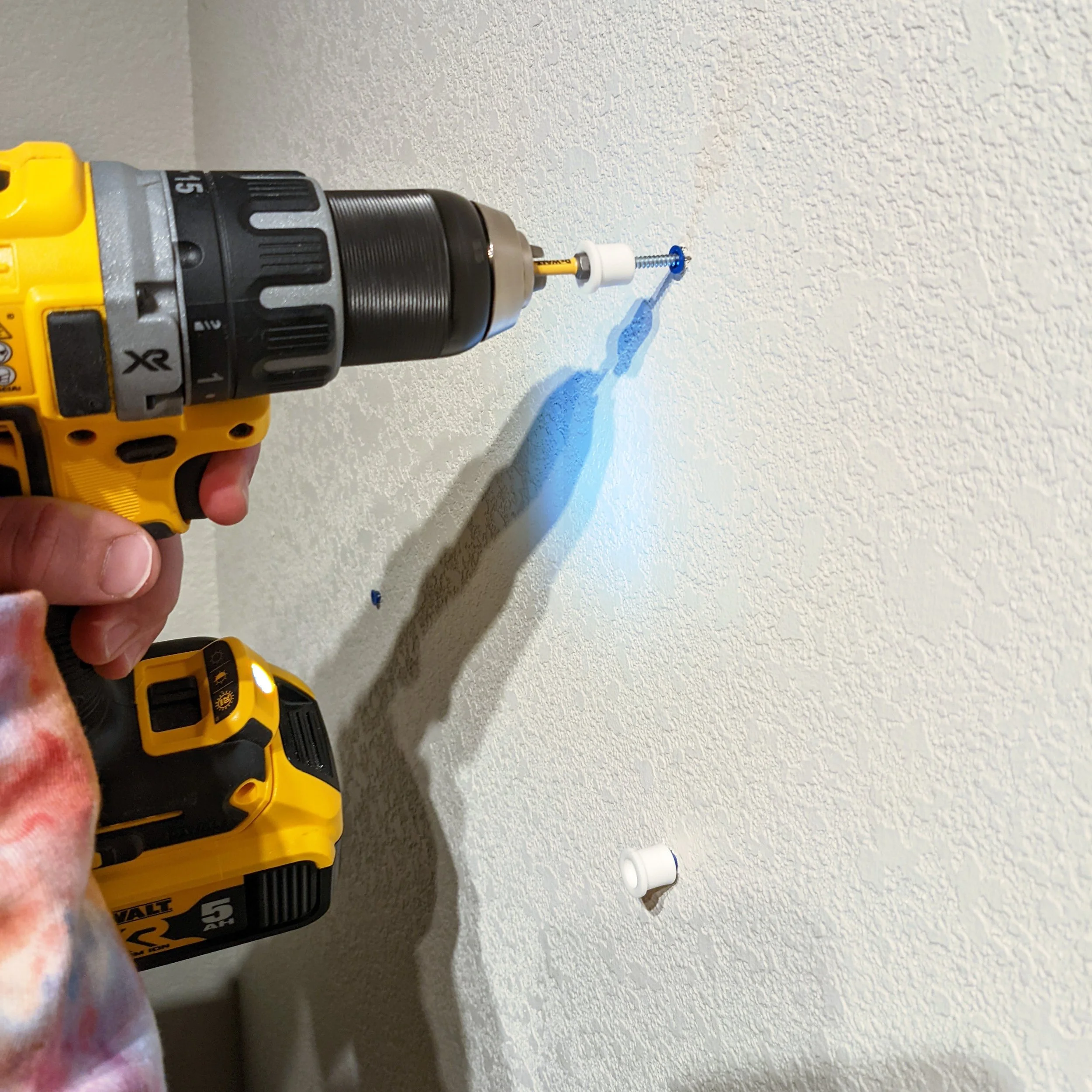 2. Locate the indents on the wall and drill 4 pilot holes large enough for the anchors to fit.