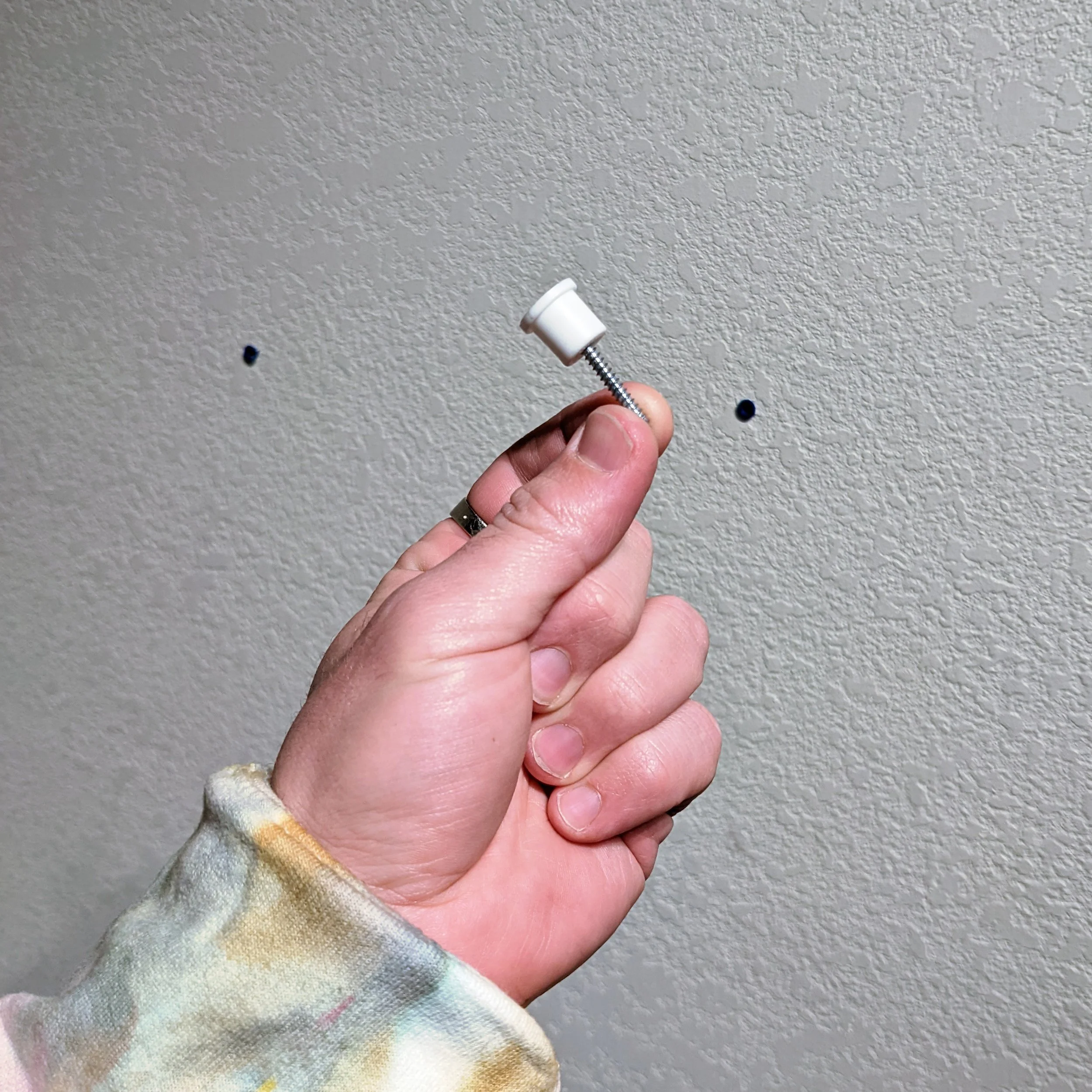 4. Place a screw through each white cylinder, making sure that the lip of the cylinder is opposite of the point of the screw.